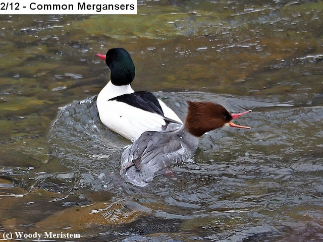 Time to leave and head south. About fourteen miles away as the eagle flies, but much further by road I stopped to photograph another eagle nest – this one on a smaller creek and much further from the road, and not on the official inventory of eagle nests in the state. One adult was in the nest, as was at least one eaglet, while the other adult perched above them –